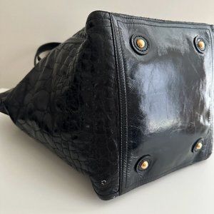 Authentic YSL Yves Saint Laurent Downtown Black Quilted Croc Embossed Patent Leather Tote!
