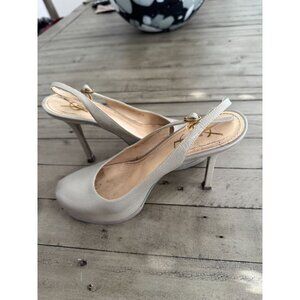 YSL Yves Saint Laurent Grey Leather Tribtoo Tribute Platform Slingback Pumps Size 36.5 6.5