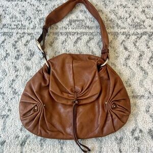 YSL Yves Saint Laurent Mamounia Sac Brown Leather Shoulder Pleated Hobo Bag