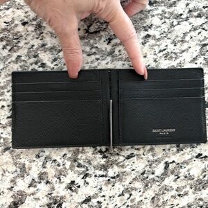 YSL Yves Saint Laurent Men’s Wallet w/ Money Clip & Black Metal Logo