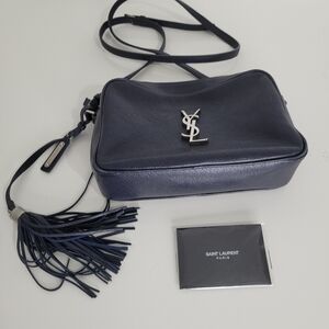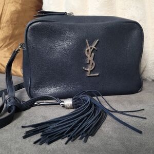 This YSL Yves Saint Laurent Navy blue lou lou tassle camera bag is a great addition to your bag collection. Has general wear, Please see photos for details. Appx 9.5"Lx 6"Hx 3"W measurements in photos.