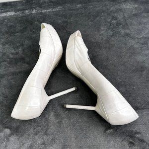 YSL Yves Saint Laurent Peep Toe Pump Light Gray Putty Leather Stiletto 38 US 8