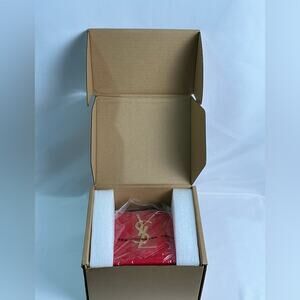 YSL Yves Saint Laurent Red Chevron Quilted Clutch Counter Display New