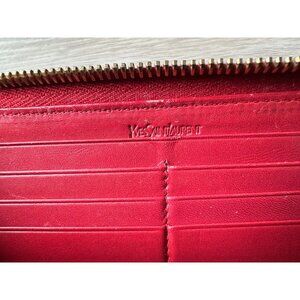 Bright and shiny red patent leather YSL zip around wallet. Plenty of card slots and zippered coin pouch inside.