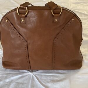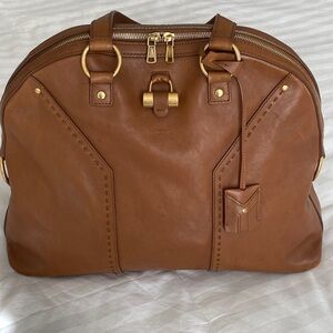 YSL Yves Saint Laurent Rive Gauche Tan Leather XL Muse Satchel Handbag