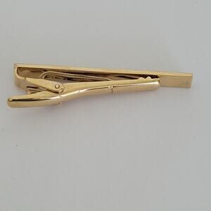 YSL Yves Saint Laurent Tie Bar Clip Clasp Gold Silver Tone 2in Logo Vintage
