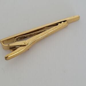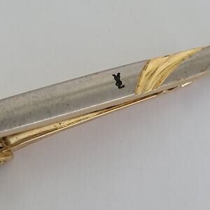 YSL Yves Saint Laurent Tie Bar Clip Clasp Gold Silver Tone 2in Logo Vintage