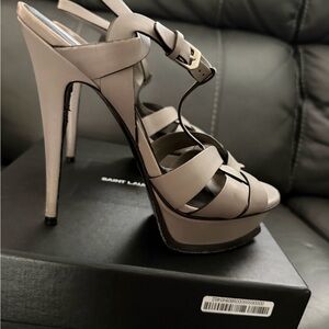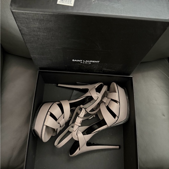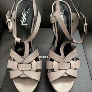 Yves Saint Laurent SIZE 39.5 Tribute T-Strap Sandals OYSTER GRAY