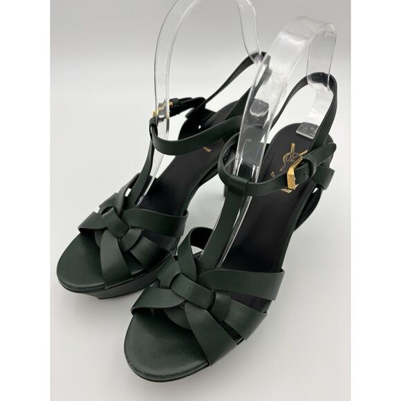 YSL Yves Saint Laurent Tribute 75 Platform Sandal Heels Dark Green Size 38 / 8