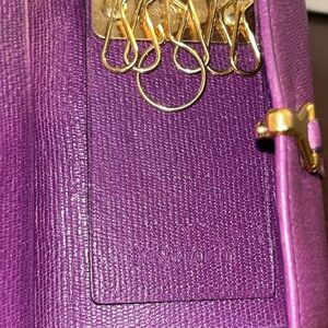 YSL Yves Saint Laurent "Y" 6-ring Leather Key Case in Purple w Gold Hardware EUC