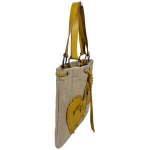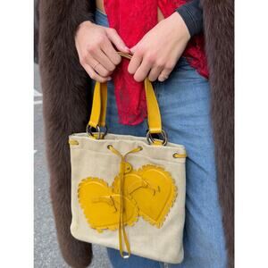 YSL / Yves Saint Laurent Yellow Heart Embellished Mini / Small Shoulder Tote Bag