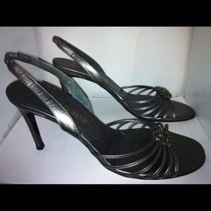 YSL pewter/gray sandals. Sz 8. Round stone, NEW!
