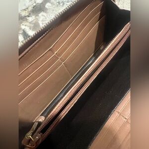 2013 Cognac brown YSL zippy long wallet. Patent leather. Interior in excellent condition. All hardware intact. Exterior has a couple of small dots (transfer) on the patent which is very common. No other call outs.