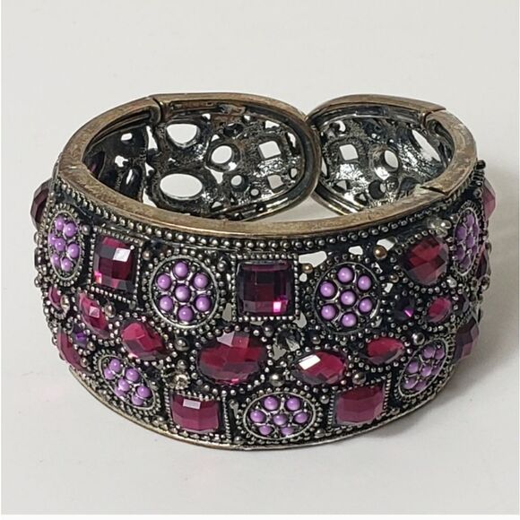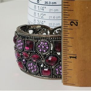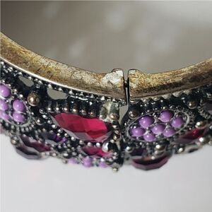 YUHONG Hinged Metal Jeweled Embellished Cuff Bracelet Purple
