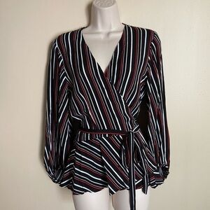 YUMI KIM Anthropology Posh Life Striped Wrap Top M blouse