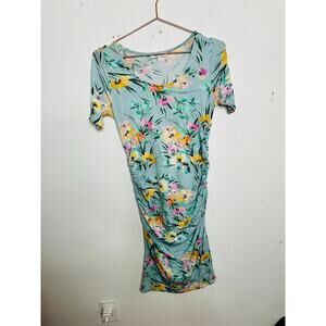 YUMI KIM Blue Floral Printed 100% Cotton Short Sleeve Scoop Maternity Dress sz S