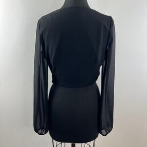 YUMI KIM It Takes Two Top Only Black Long Sheer Sleeves Cropped Tie Front Size M