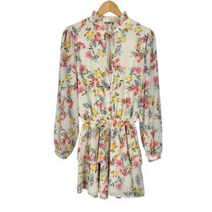 YUMI KIM Love Always Dress Size Large – Gently used – Size large – Multicolor – Floral print – Long sleeve – Tiered skirt – Tie neck – Lined – Polyester – Dry clean or hand wash - DR-17495 Measurements(Approximate): Chest: 38” Length: 35” Sleeves: 25” Casual women’s ladies misses spring flower mulberry ivory boho chic romantic layered pastel soft garden printed print Ruffle feminine soft bloom #R1