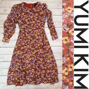 YUMI KIM Love Me Tender Midi Dress Rust Floral Long Sleeves Small Petite SP