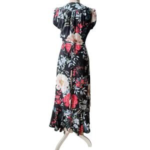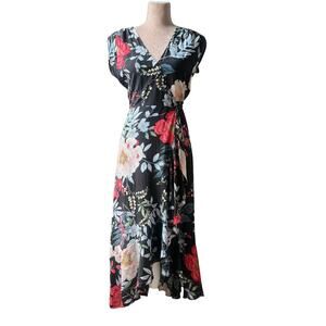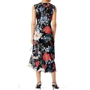 YUMI KIM Santorini Midi Wrap Dress Rain Forest Black Silk Floral Small Wedding