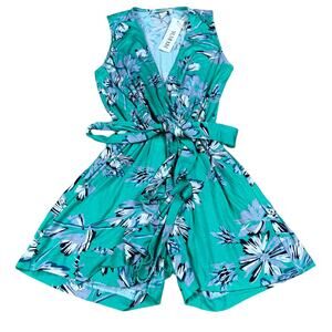 Vibrant teal floral jersey knit shorts romper from Yumi Kim in size XS. New with tags.