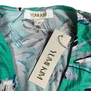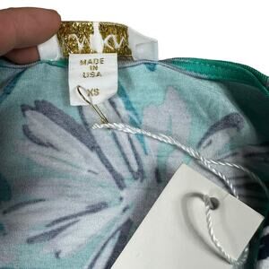YUMI KIM Short Draped Floral Romper Jersey Knit Women's XS NWT Teal White Blue