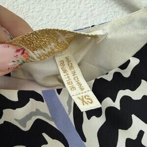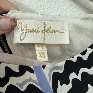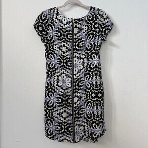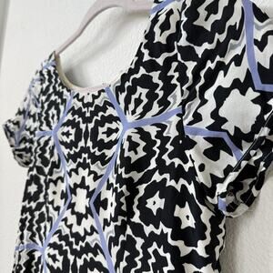 YUMI KIM Silk Sheath Dress Black Ivory Blue Geometric Print XS