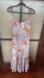Blue floral chiffon (55% Rayon, 45% Viscose). A-line. Sleeveless. Sweetheart. Back zipper closure. 54" from shoulder to hemline. Imported.