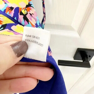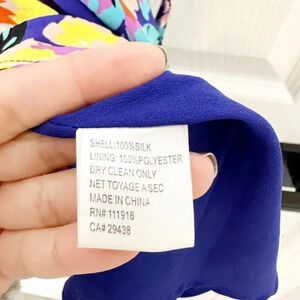 Cap sleeve true wrap dress in 100% silk with pretty yellow, pink and red floral print all over. Fully lined.