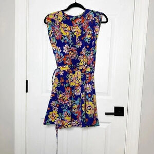 YUMI KIM 100% Silk Blue Floral Wrap Mini Dress