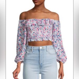 Crop Top size L. This chic off-shoulder crop top features allover floral print with ruffle detailing.