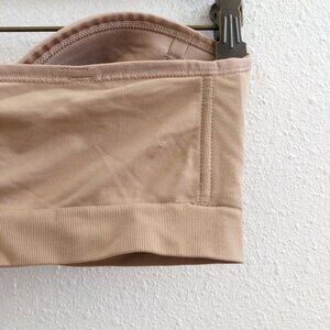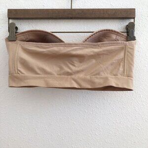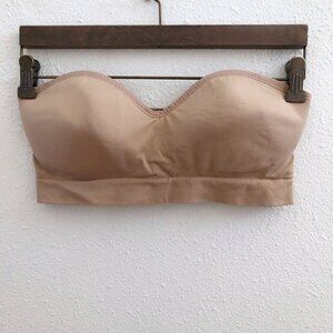 Wireless padded cups with silicone grip at top. Missing convertible straps. Pullover style, elasticized soft band. Size conversion: XS = 30C, 32B, 34A; S = 32C, 34B, 36A; M = 32D, 34C, 36B; L = 34D, 36C, 38B. In good preowned condition with no noted flaws. Brand’s size chart in the last photo.