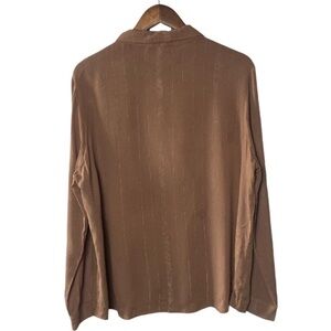 The YUNI Taupe Coral Button-Up Shirt is a stylish and versatile addition to any wardrobe. Designed with a modern aesthetic, it features a subtle silver stripe detail that adds a touch of sophistication to its overall look. The shirt is tailored in an XL size, offering a comfortable fit for those who prefer a relaxed yet polished style. Its button-up design makes it suitable for both casual and semi-formal occasions, ensuring adaptability to various settings. The unique taupe coral color enhances its appeal, providing a distinctive yet understated charm. This shirt is an excellent choice for individuals seeking a blend of elegance and functionality in their attire.