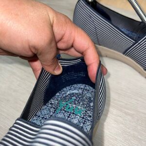 YUU Bevel Blue/White Stripe Elastic Slip-on NWOT Women's 5.5