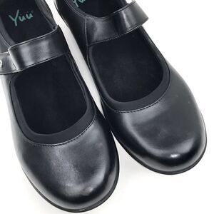 YUU Chandra Black Mary Jane Heeled Faux Leather Comfort Shoes