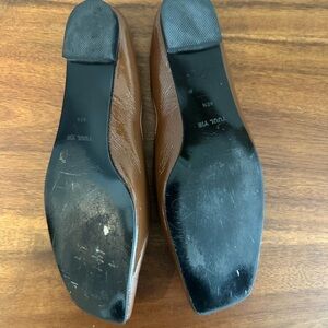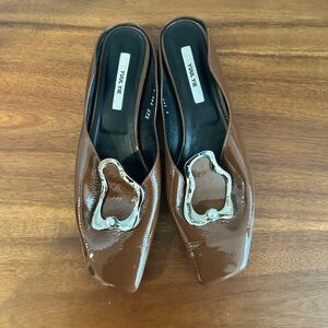 Step out in style with these chic brown patent leather mules. Perfect for any occasion, these shoes offer both comfort and elegance. Barely worn. No box.