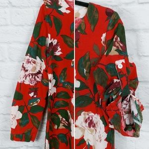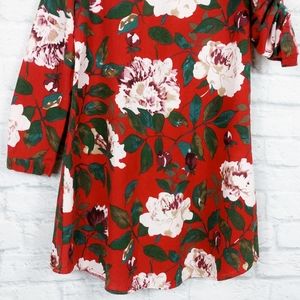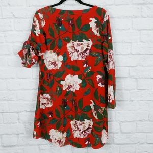 YUZAO Red Floral Rose Shift Dress w/ Long Sleeves