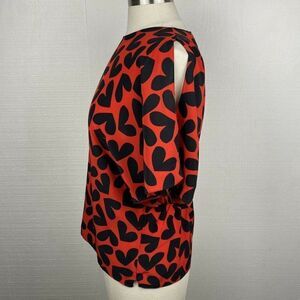 YVES SAINT LAURENT Blouse 6 Womens Hearts Black Red Short Sleeves Cinched Waist