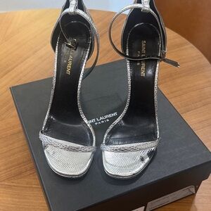 YVES SAINT LAURENT Cream Stiletto Heels with Ankle Strap