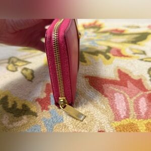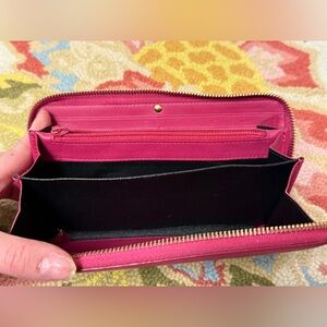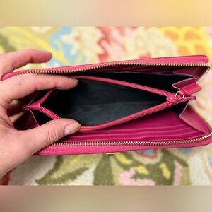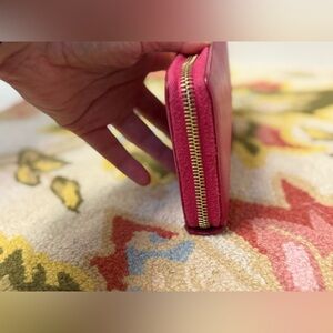 YVES SAINT LAURENT Leather Classic Y Ligne Clutch/Zip-Around Wallet W/ Gold-Tone Hardware - Fuchsia/Pink