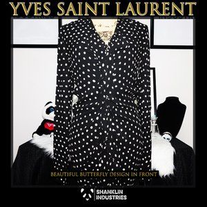 🤍🐼YVES SAINT LAURENT🐼🤍 NWT Butterfly Silk Polka Dot Blouse SZ F34