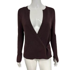 YVES SAINT LAURENT RIVE GAUCHE Burgundy Wool V-neck Long Sleeve Wrap Sweater M