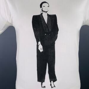 YVES SAINT LAURENT Rare Size L White Black Figures Cotton Short Sleeve T-shirt