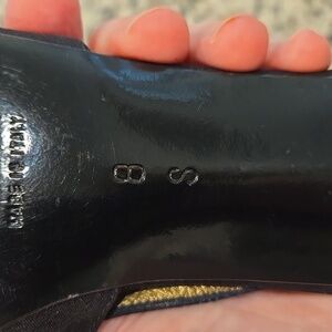 Pre-owned. Good condition. Some wear to the soles. Minor fading to the inside of 1 strap. Size 8. Made of leather. made in Italy. Shoe has an S on the bottom which may equate to slim.