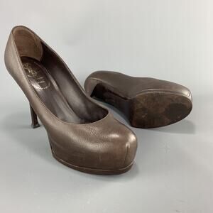 YVES SAINT LAURENT Size 6.5 Brown Leather TRIBUTE Platform Pumps