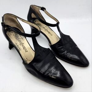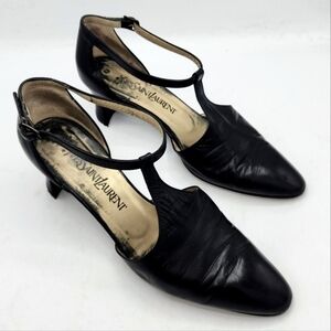 YVES SAINT LAURENT VINTAGE LEATHER T-STRAP ALMOND TOE MARY JANE SHOES BLACK 7.5