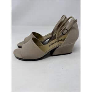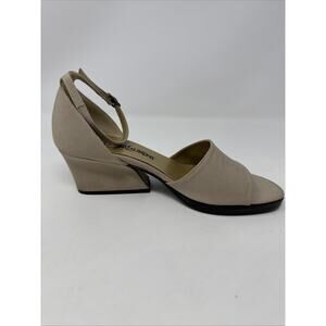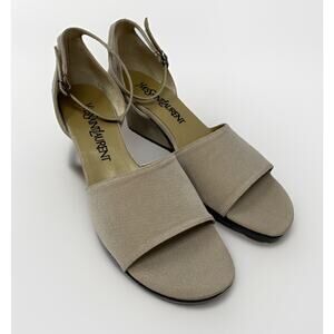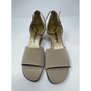 YVES SAINT LAURENT Vintage Champagne Chunky Heel Shoes Ankle Strap YSL 6.5 90s