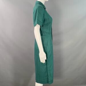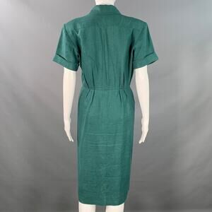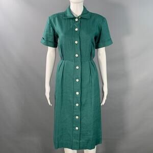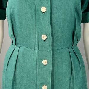 YVES SAINT LAURENT Vintage Size 6 Green Linen Button Up Pleated Shirt Dress