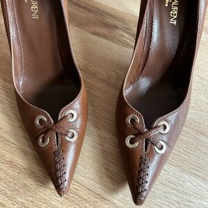 YSL vintage leather cross-stitch studded heels Y2K yves saint laurent size 37