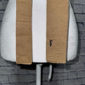 YVES SAINT LAURENT TAN 100% COTTON SOLID NECKTIE EXCELLENT CONDITION